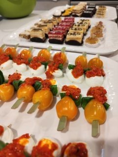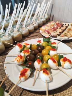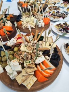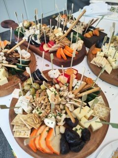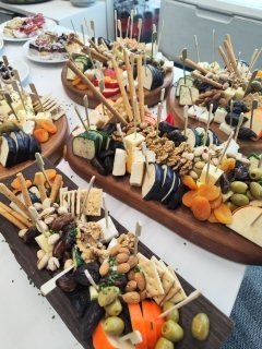 Para este cóctel lleno de estilo y buen gusto, diseñamos una propuesta perfecta para un formato a dedo o de pie, ideal para conversar, brindar y disfrutar sin perder el ritmo del evento. Preparamos una serie de exquisitas tablas cuidadosamente dispuestas, con productos de primera calidad: quesos madurados, fiambres seleccionados, frutas frescas, frutos secos y dips caseros, todo pensado para encantar tanto al paladar como a la vista. La colorida decoración acompañó la puesta en escena, creando un ambiente vibrante, elegante y acogedor, donde cada detalle aportó a una experiencia sabrosa y visualmente inolvidable.