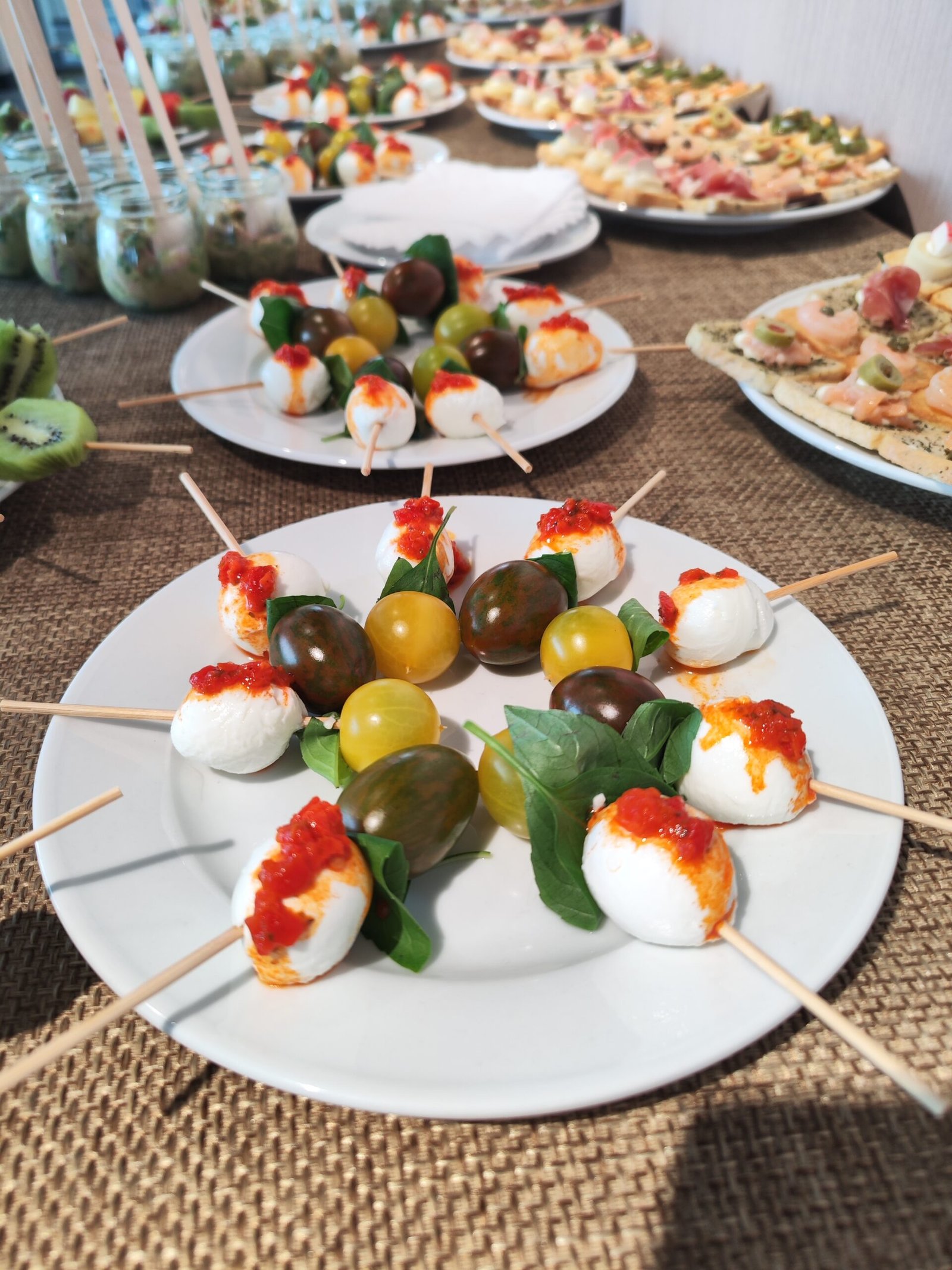 Para este cóctel lleno de estilo y buen gusto, diseñamos una propuesta perfecta para un formato a dedo o de pie, ideal para conversar, brindar y disfrutar sin perder el ritmo del evento. Preparamos una serie de exquisitas tablas cuidadosamente dispuestas, con productos de primera calidad: quesos madurados, fiambres seleccionados, frutas frescas, frutos secos y dips caseros, todo pensado para encantar tanto al paladar como a la vista. La colorida decoración acompañó la puesta en escena, creando un ambiente vibrante, elegante y acogedor, donde cada detalle aportó a una experiencia sabrosa y visualmente inolvidable.